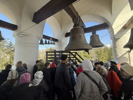 По окончанию экскурсии ученики в сопровождении взрослых поднялись на колокольню, с которой открывается прекрасный вид на окрестности города, что особо понравилось детям.
