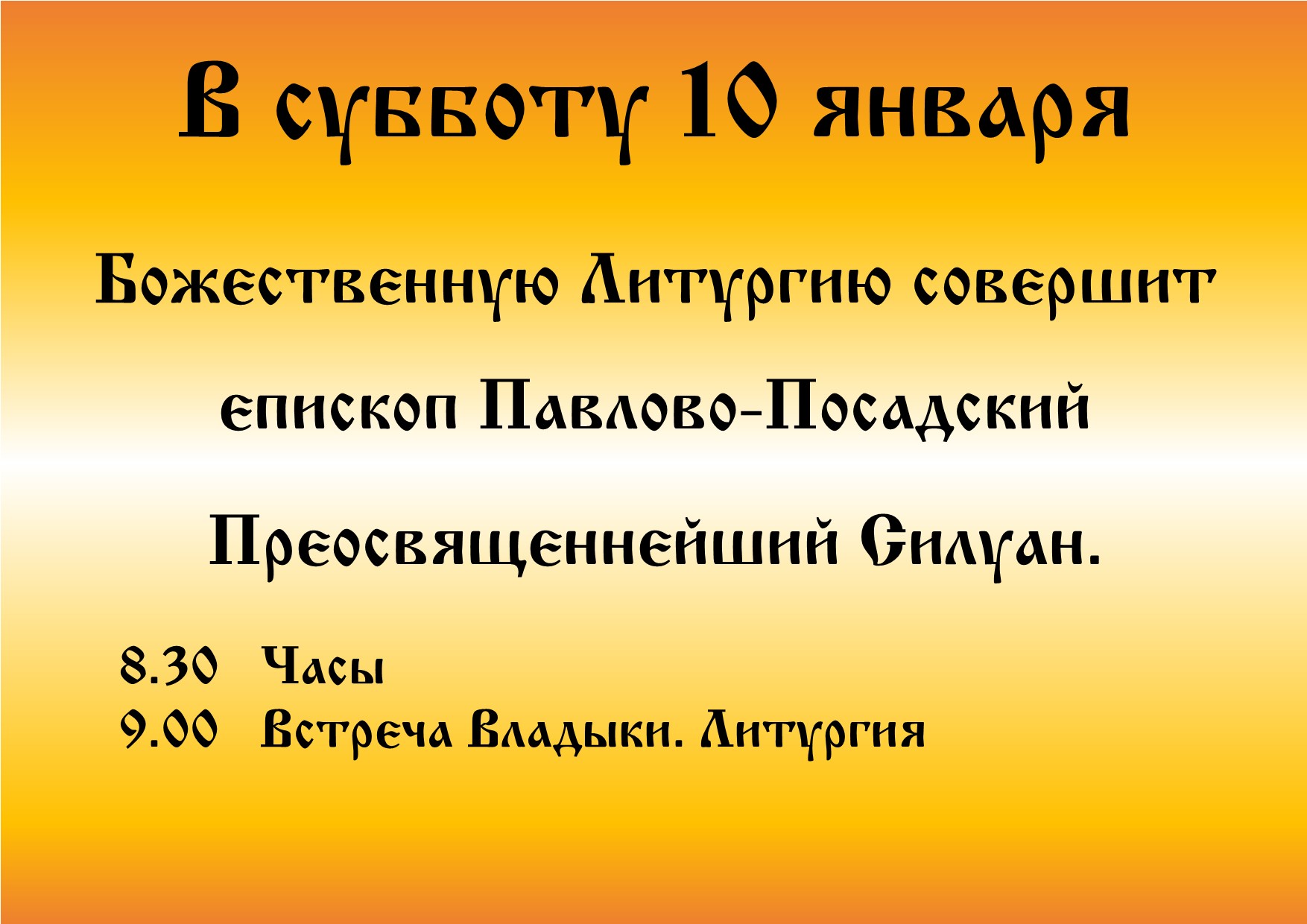 В субботу 10 января Божественную Литургию совершит епископ Павлово-Посадский Преосвященнейший Силуан.
